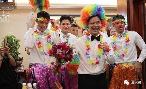 抢亲环节的游戏以及婚礼上音乐等等,都是林艳芳和朋友们自己想的和准备的。