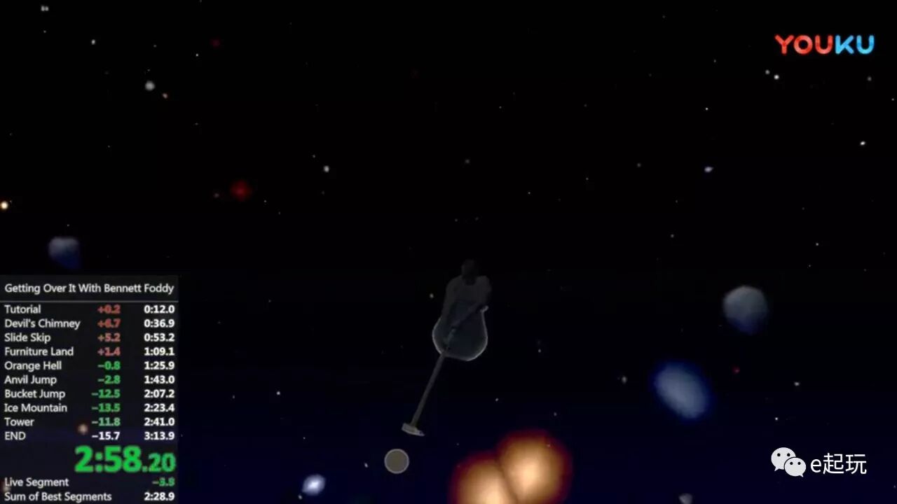 实际上这游戏的乐趣不是来自于自己成功爬上山,而是来自于你目睹别人摔下山。它通过这种方式极大地渲泄了人性中的某些负面情绪,因而得到大家喜爱。