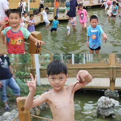 平时吃的小龙虾看上去都蛮凶,亲手抓活的小龙虾是种怎样的感受呢?孩子们完全不怕!刚下水,就有小朋友逮到了龙虾,我们小朋友们真的很勇敢呢!