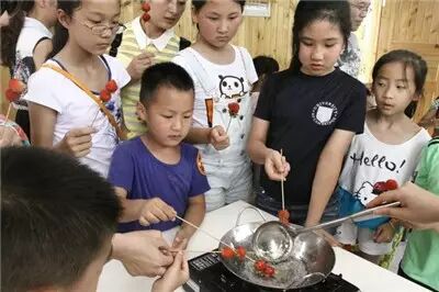 看着天上的太阳越来越毒,马上转战室内——DIY草莓糖葫。熬糖环节,考虑安全问题,暂由爸爸妈妈们代劳啦!