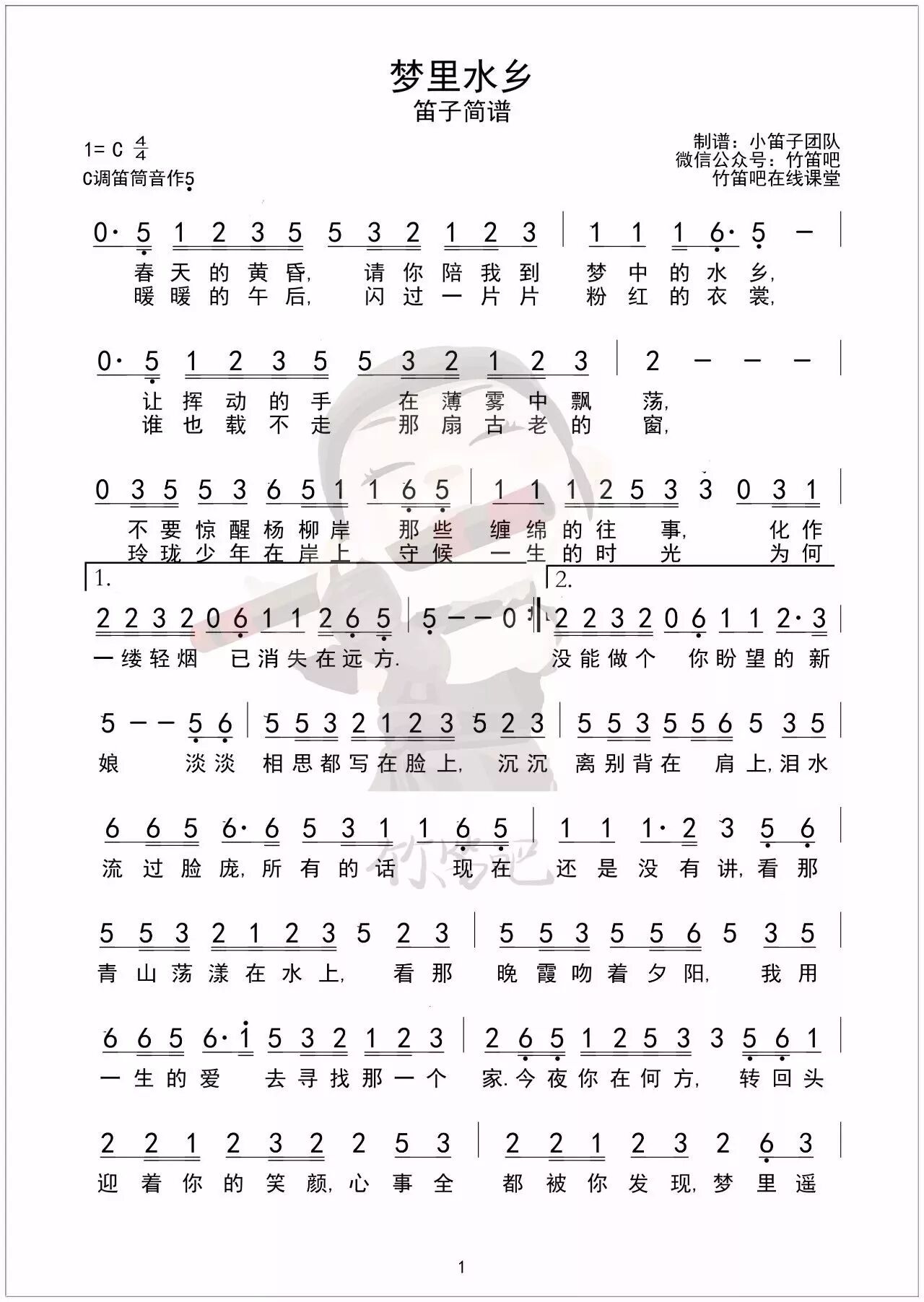 全曲用C调筒音做5指法演奏,江南民族旋律浓重,用曲笛更好能更好演奏出此曲的味道~