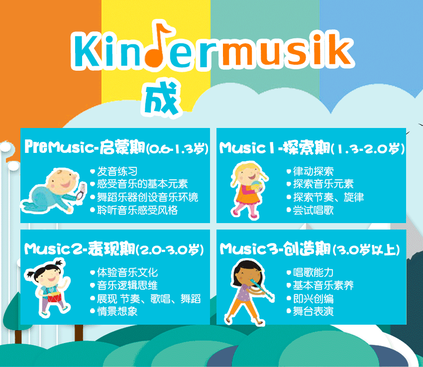 孩子对音乐的探索是一个从吸收到表达的过程15个月到24个月是孩子学习语言的萌芽期,这时段的孩子已经慢慢能从单字转化到叠字的哼唱,他们还能跟随音乐进行律动的同时吸收音乐的元素,配套使用简易的打击乐器,让探索与学习充满成功的乐趣。