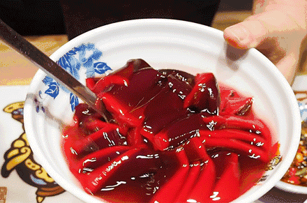 然而这卖相极佳的“鸭血”里却没有一滴鸭血,都是用牛血兑水充数。