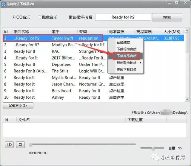 搜到需要下载的音乐后,右键点击歌曲,可以下载标准音质和高品音质;点击更改下载目录,可根据自己需求自定义选择保存路径;个人感觉还是很不错的。那么,当然是下载高品音质。