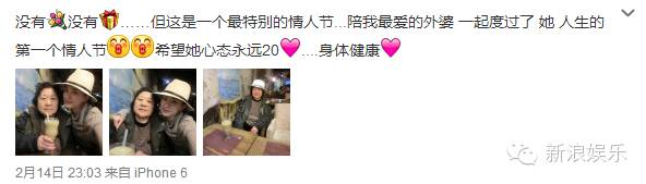 今年情人节那天,高磊鑫发了条微博说:“没有鲜花,没有礼物。陪外婆度过情人节。”