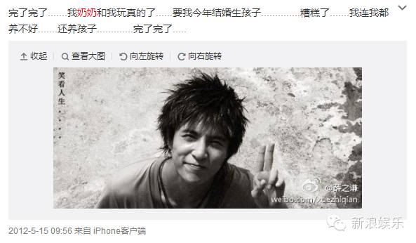 2012年,传闻两人就是在这一年结婚的。薛之谦被扒出发过一条酱式儿的微博。