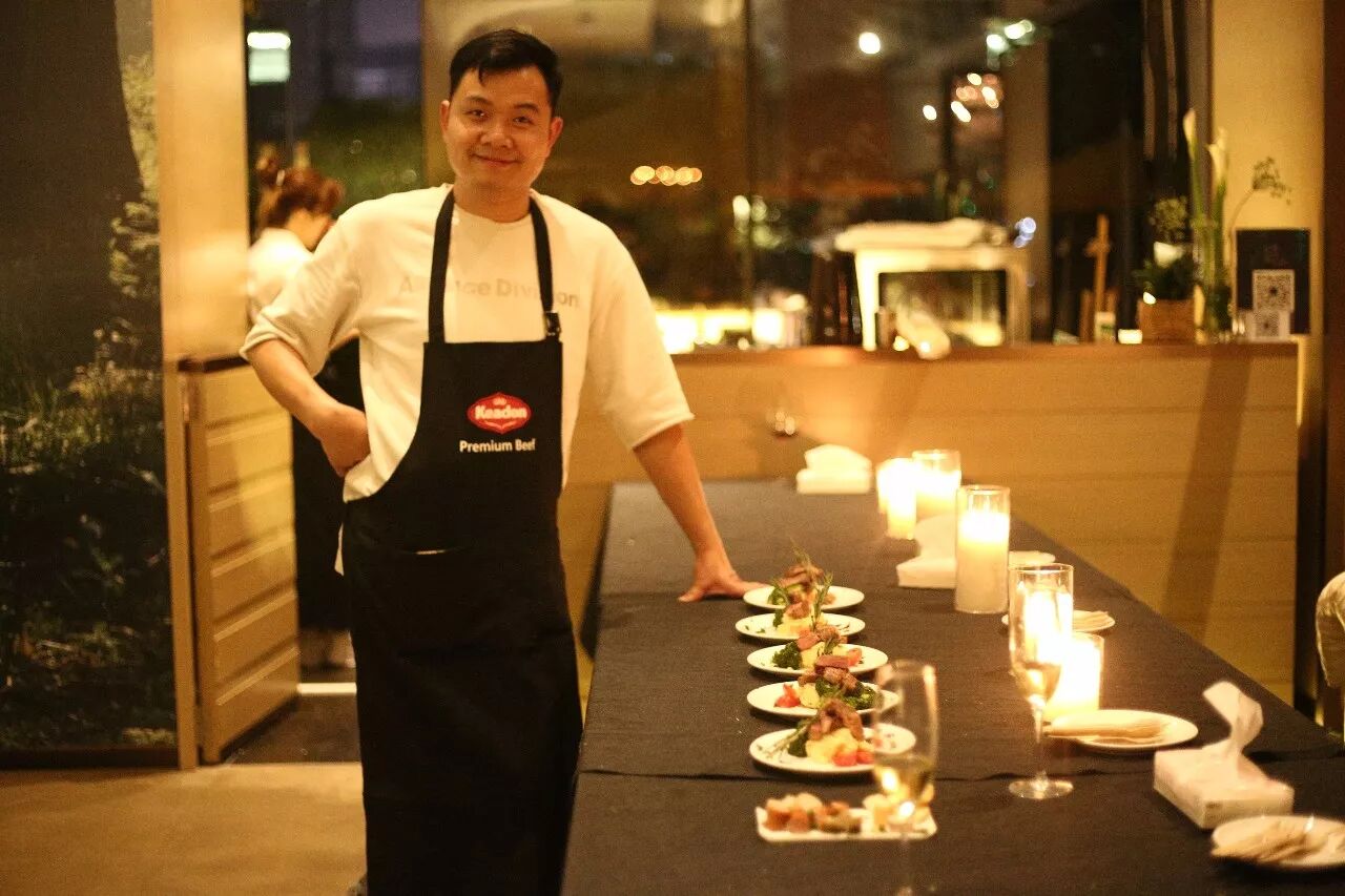 主厨这次选择草饲的高品质直供澳洲牛肉。由于肉质新鲜优质,任何酱汁都会遮盖了它的鲜美,所以这次的牛扒在炭火上烤至5分熟的完美口感后直接佐以澳洲矿物盐和苏门答腊黑胡椒粒,还原新鲜肉质的本原鲜美。