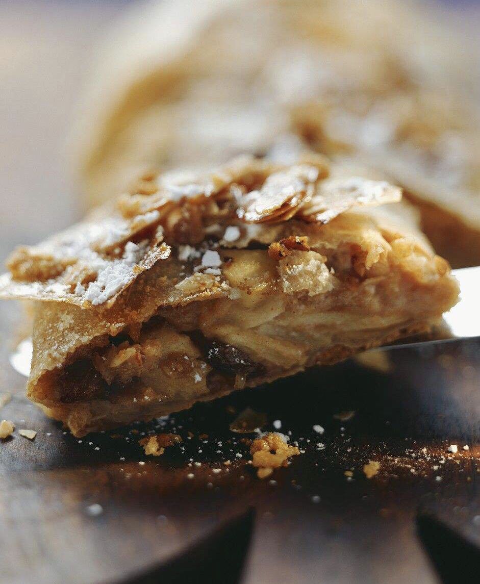 奥地利苹果卷是维也纳特有的一种点心,它的历史可以追溯到古希腊时代。据说,奥地利皇帝要求宫中的厨师将外皮做到能看到底下的报纸,真是不容易。