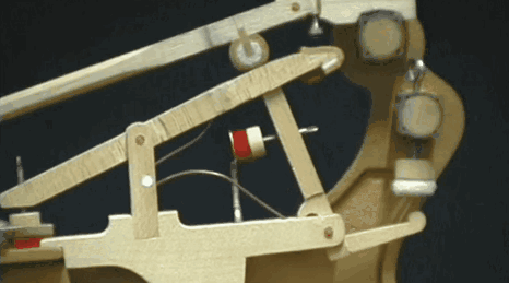 这简直就是当时乐器制造界的黑科技。这套机械系统难度在于需要将擒纵机的临界点设在琴槌碰到琴弦的那一刹那,太晚将导致琴槌滞留影响琴弦震动,太早又会导致力度不够并且在慢触键弱奏时失音。