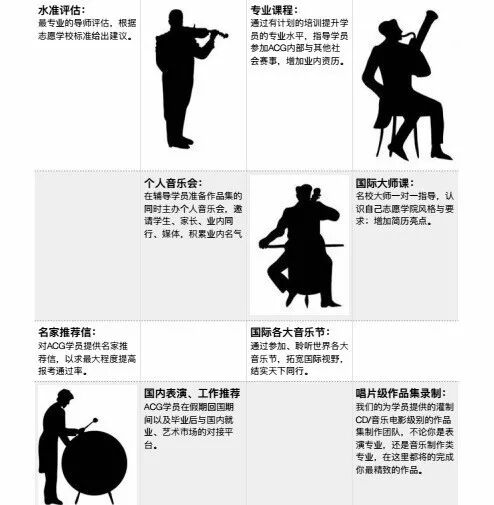 我们的导师们全部由欧美音乐学院教授、各大音乐名校海归音乐家担任,在标准化提升学员演奏能力力的同时,也将针对学员的报考志愿学校,开设全方位的音乐基础课、音乐术语课,以求最大限度拿到欧美高等音乐学院的录取offer。