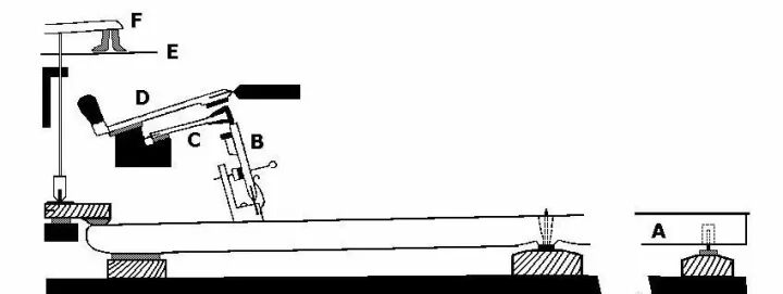 在上图中,我们可以发现这台现代钢琴的琴键上的加了4个圆形的铅块,是因为相对早期钢琴,我们需要为现代钢琴较为笨重的击弦机取得平衡,不然触感就太过沉重。现代钢琴的琴键与琴槌并非咬死的关系,在触键的初期实际上是机械咬合的过程,在通过擒纵结构真正感受到琴槌的重量时才是真正发力的开始。如果我们把触键的力度集中在手指碰到键盘的瞬间,那么机械各部之间互相受力的过程会消耗掉一部分手指的速度,当真正到达发力点时力量已经衰减了。