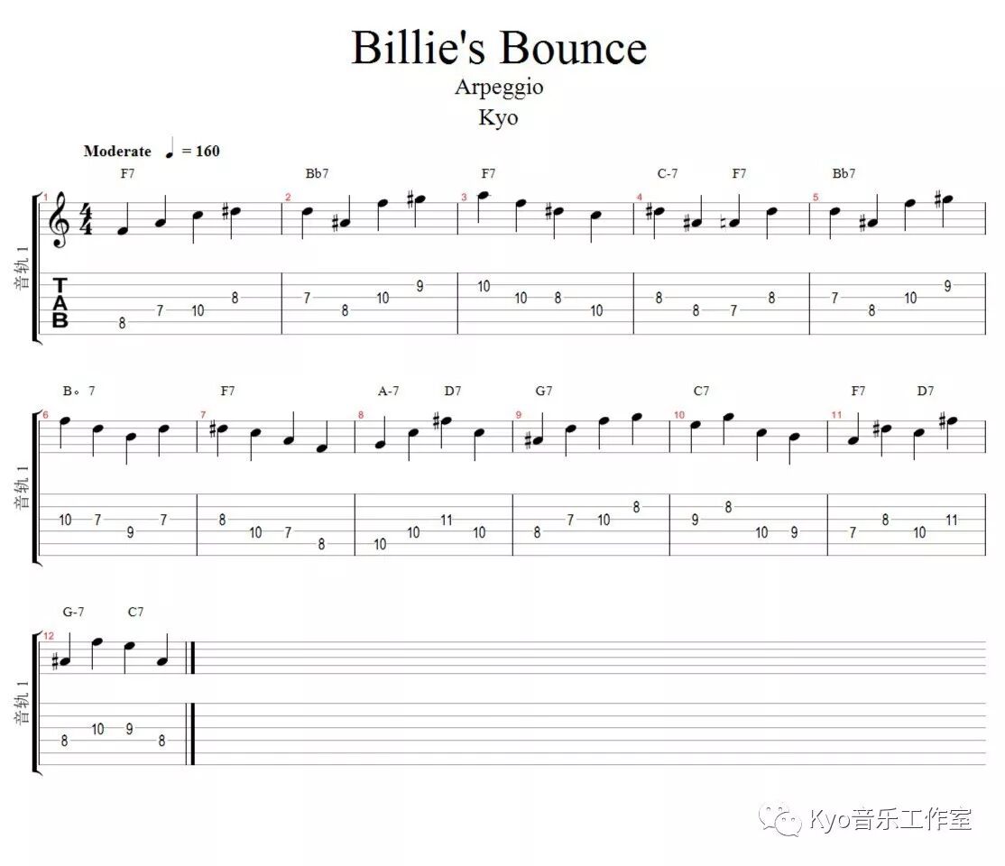 我从iREAL上把Billie's Bounce的谱子截了下来,第一步就是先把整个曲子琶一遍: