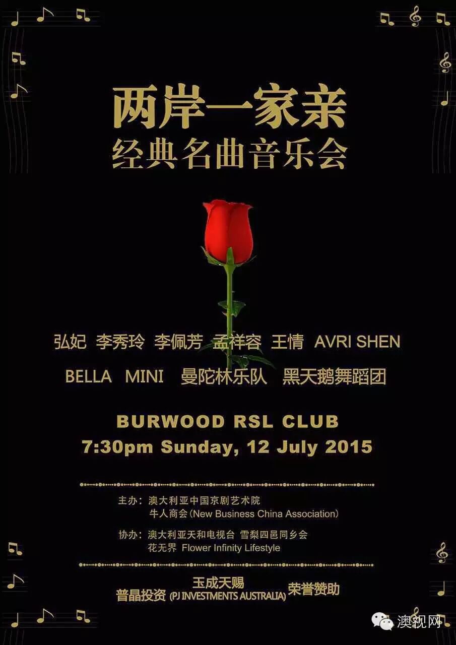 《两岸一家亲》经典名曲音乐会将于7月12日晚7:30举行。