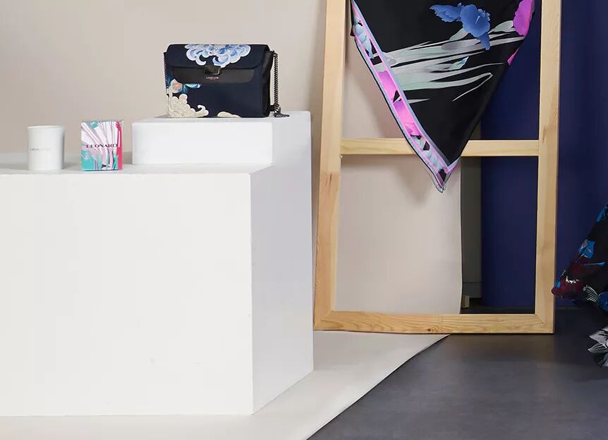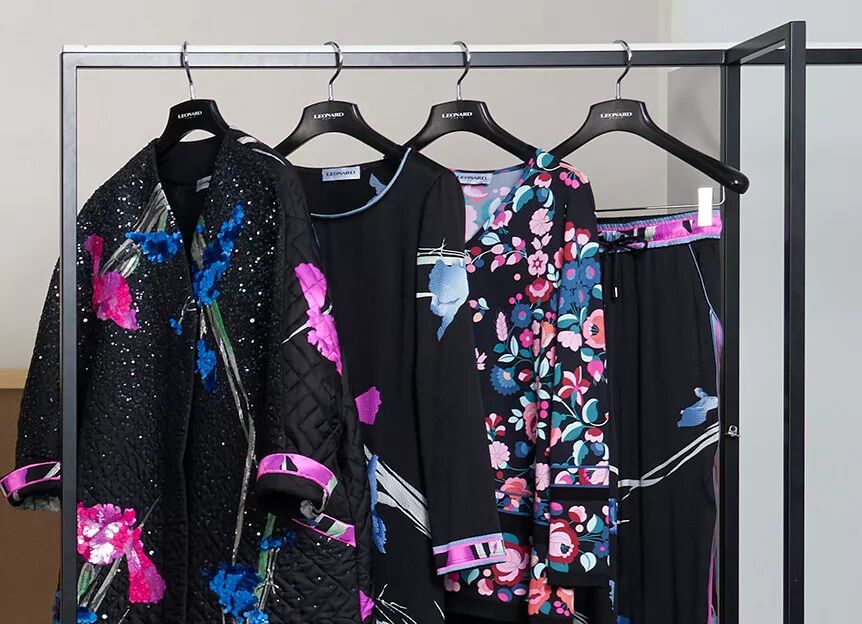极具东方风情的独特丝绸印花图案是Leonard的时装名片,无论是丝巾还是刷花图案成衣,Leonard时装都兼容东西方文化和审美情趣-色彩鲜艳、对比强烈,带有神秘的东方文化的图案花纹,线条简洁。