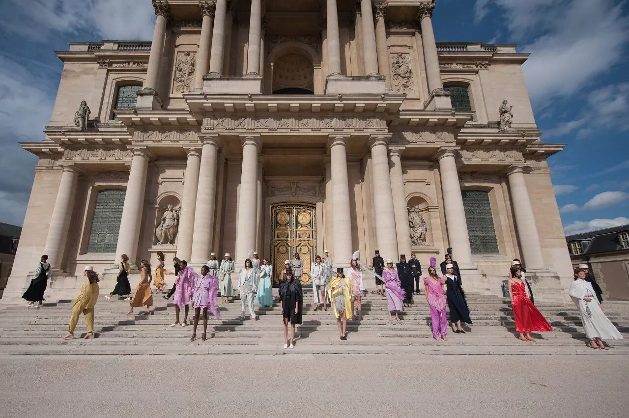 而在晚装中,性感的露肩曳地装和典雅的连身长袍也不乏斜门襟、低立领、窄滚边等东方传统的刺绣,而旗袍的溜肩、开衩和下摆也被吸纳到Leonard的西式时装中。