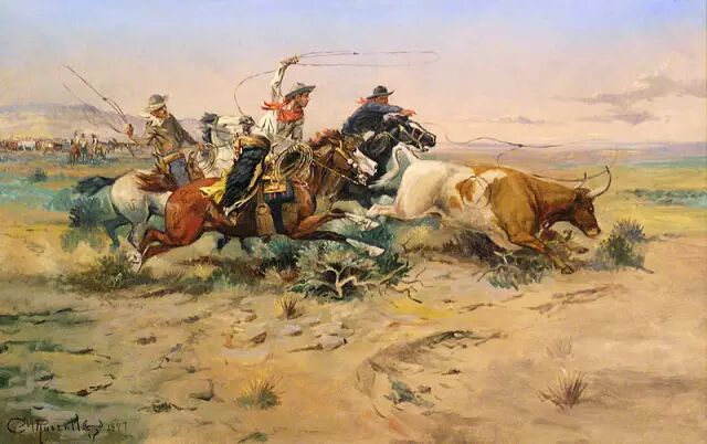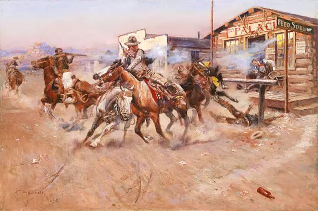 查尔斯·马里昂·罗素(Charles Marion Russell)描写美国西部牛仔的画作