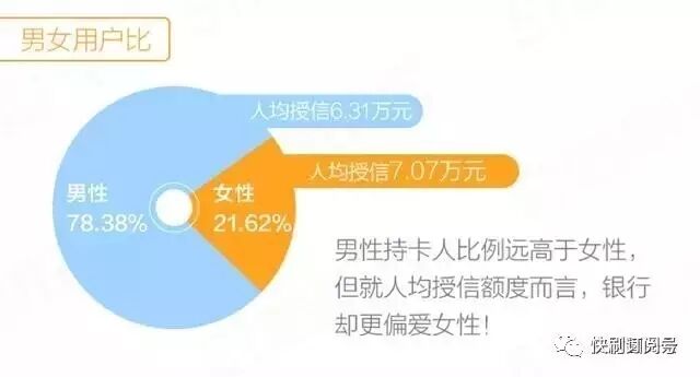 经调查发现,人均持卡量在 4 张以上的活跃用户以男性为主,但人均授信额度更高的则是女性,达到 7.07 万元,比男性高 12%。