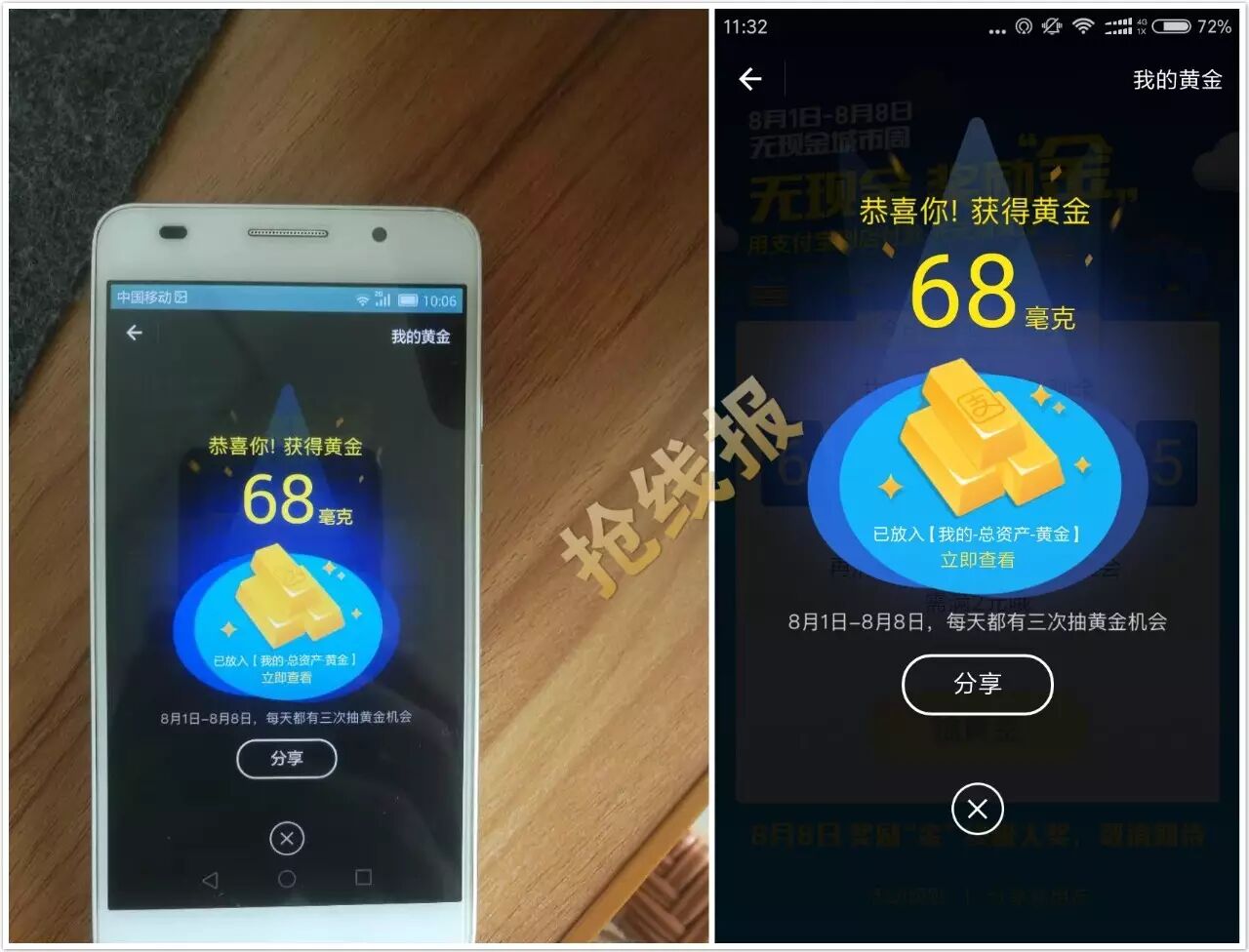 小编抽到了3个68毫克的黄金,每个类似于18元红包
