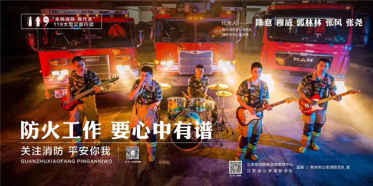逆行者乐队拍摄的“全民消防我代言”宣传海报