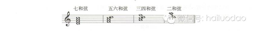 七和弦的第一转位(三音做低音)叫五六和弦,第二转位(五音做低音)叫做三四和弦,第三转位(七音做低音)叫做二和弦。