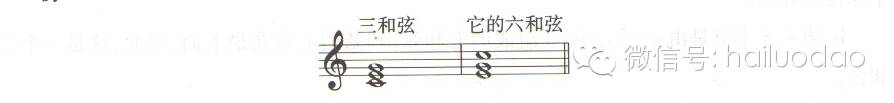 三和弦的第一转位用三音做低音,叫做六和弦: