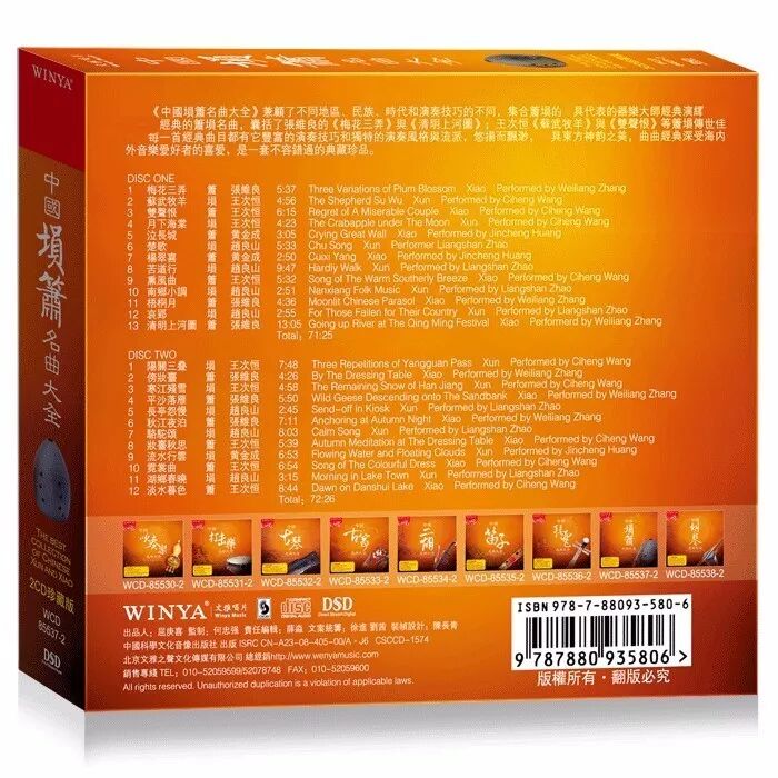 《中国埙箫名曲大全》兼顾了不同地区、民族、时代和演奏技巧的不同,集合箫埙的最具代表的器乐大师经典演绎有史以来最经典的箫埙名曲,囊括了张维良的《梅花三弄》与《清明上河图》;王次恒《苏武牧羊》与《双声恨》等箫埙传世佳作。每一首经典曲目都有它丰富的演奏技巧和独特的演奏风格与流派,悠扬而飘渺,独具东方神韵之美,曲曲经典深受海内外音乐爱好者的喜爱,是一套不容错过的典藏珍品。