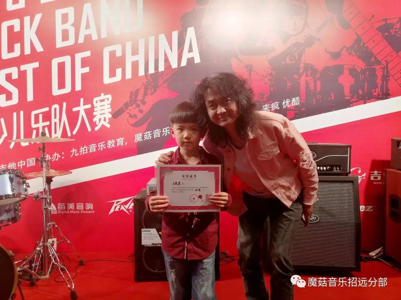 吉他演奏家纪斌老师,马海滨老师为小魔童乐队颁奖