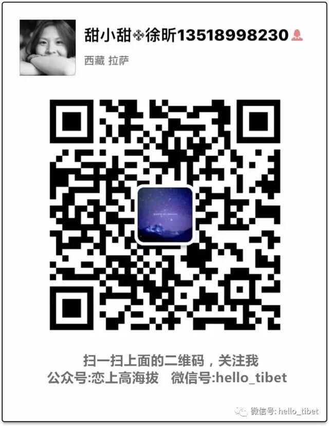 关注公众号:hello_tibet 扫二维码 关注@恋上高海拔 ,量身定制你的旅行,更多风景更多路,带你遇见不一样的自己。