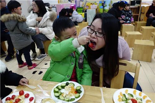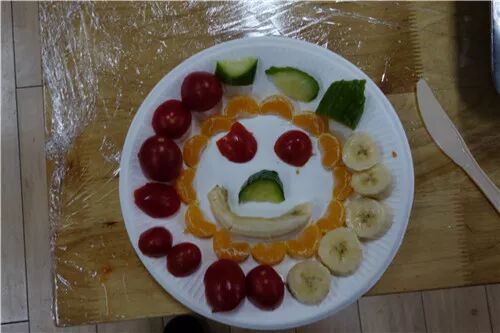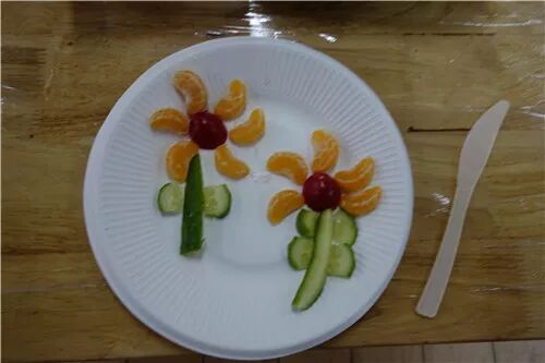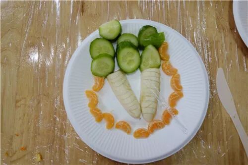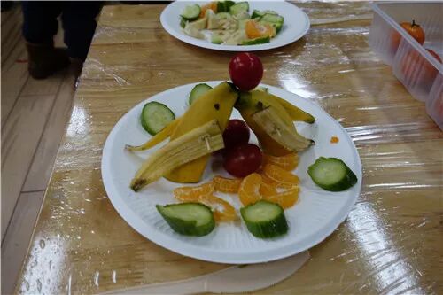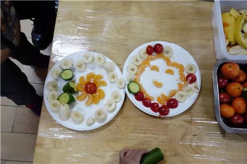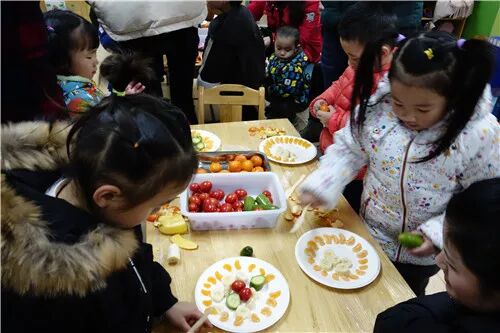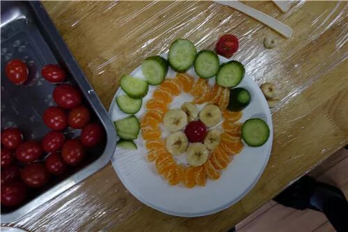 “水果拼盘”是一种消滞和胃、烘托气氛、增进情感的“水果工艺”作品。水果含有丰富的营养,而且绿色健康。在活动过程中,不仅能给宝贝们带来了欢乐,而且激发了宝贝们的创造力,也能让家长感受到孩子献上的一份浓浓爱意。