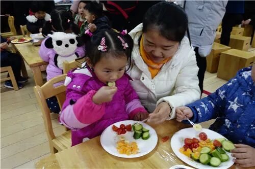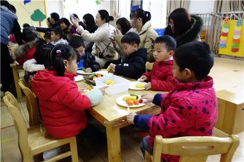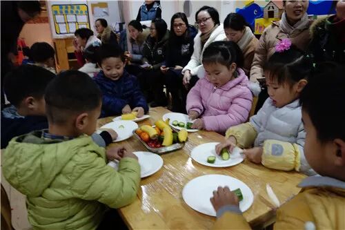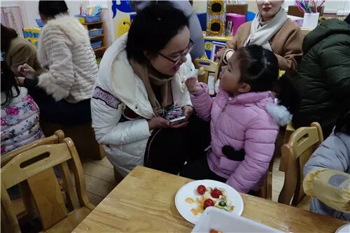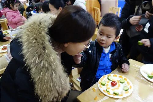 本次活动分为两个部分:先请家长在班级观摩孩子制作水果拼盘并品尝孩子为其献上的爱心;再请家长到多功能厅欣赏孩子们的表演。