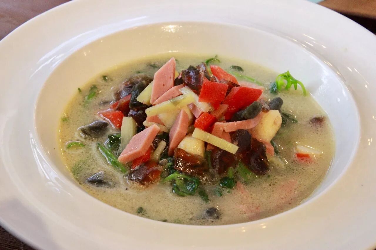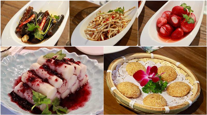 野菜锅巴烙、酸笋炒鸭肉、水果茶
