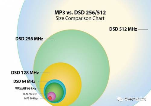 与有损音频和无损音频的定义类似,高解析音频同样可以分成不同的档次,其中最低标准是24bit/44.1Khz的音频文件,它的比特率(码率)是2116kbps,这种音频文件通过大多数智能手机中集成的音频解码芯片就已经可以播放了。而像高解析格式中的DSD文件,最低级别DSD64的比特率(码率)就达到了5645kbps,而大部分解码芯片如果不通过软件转换后再解码,则无法播放音频,而软解码后听到的声音并不能够体现真正高解析音乐的细节。所以解码芯片之间的差距显而易见,而且关系到了音乐能否被播放这种最基本的要求。