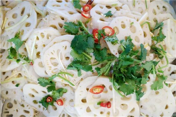 肉丝凉皮、酱汁藕片、玉米沙拉