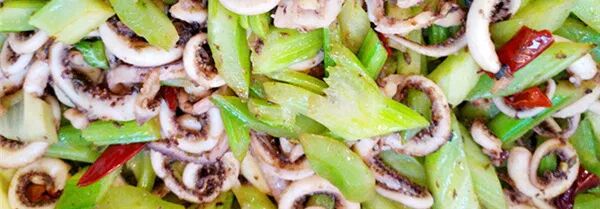 西芹鱿鱼、孜然猪心、香甜玉米粒