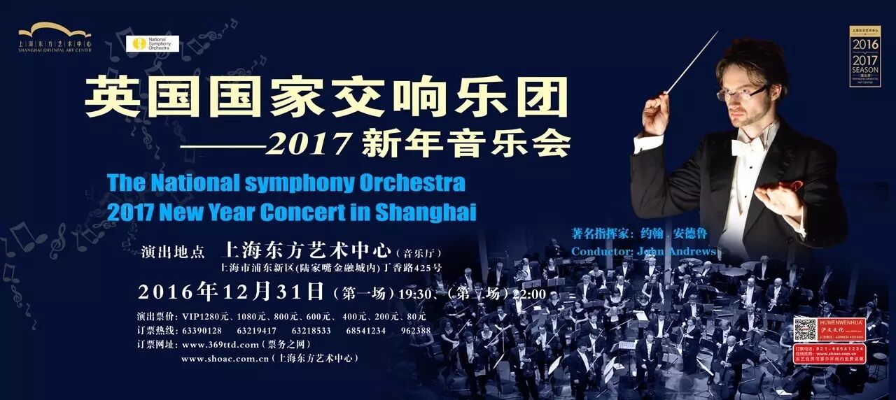 近年来,东艺也有跨年音乐会,2010年的维也纳约翰施特劳斯圆舞曲乐团音乐会、2013年的德国柏林交响乐团音乐会和2015年的艾森巴赫与德国石荷州节日交响乐团音乐会……今年,英国国家交响乐团将奏响新年的序曲,于新年夜当天在东艺连演两场音乐会,其中晚上10点场“跨年音乐会”将与乐迷朋友们一同倒数,迎接2017年的到来!