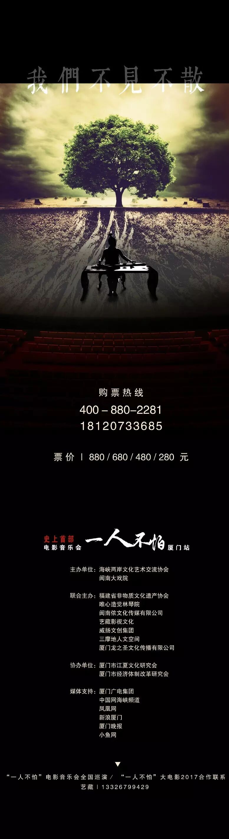 “一人不怕”电影音乐会(厦门站)将跳脱以往演奏会单一介绍剧目拉帘幕演奏的旧框框,将以电影贯穿整场演出,从中带出一首首动人的现场演奏和剧情,一气呵成的剧目表演将带给观众全新的演奏感受。