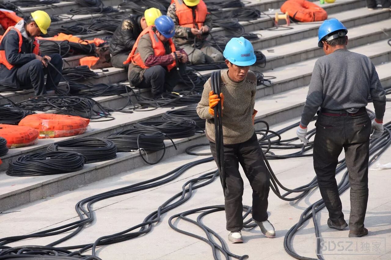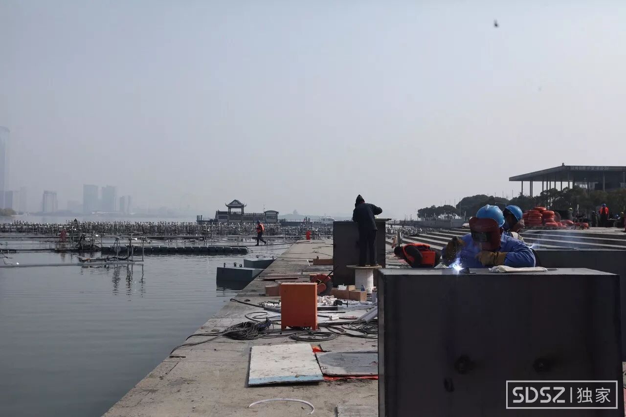 据施工区域的当地工友,整个工程从8月份开始施工,不到半年时间,金鸡湖音乐喷泉的安装工程已经进行得差不多了,基本已成型,工作人员正在加班加点地进行最后的连接工作,天气这么冷,真是辛苦了。
