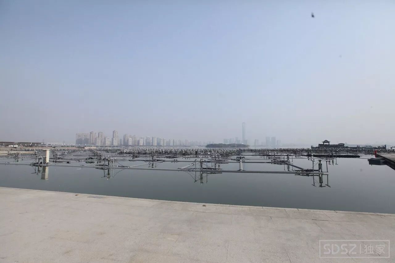 可以看到目前,金鸡湖音乐喷泉的升降浮体已经全部下水,新的喷泉设施,显得非常壮观。