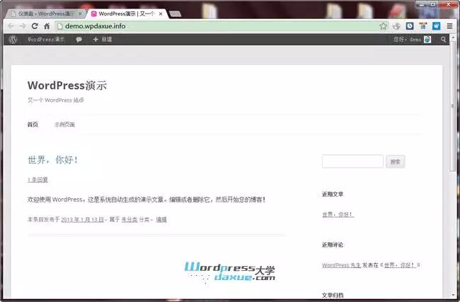 然后用之前填好的用户名和密码登陆,就进入到wordpress管理后台了。