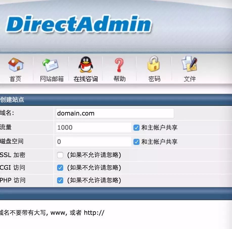 每一个空间商的管理面板不一样,本文示例图片用的都是WOPUS的DA面板,因为简洁明了,容易看明白。正规军的管理面板,我用过的阿里云、西部数码和新网,都相对比较复杂,但也都是可视化操作,入门基本无障碍。