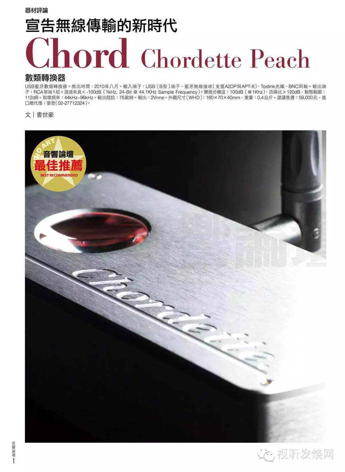 先说我的结论好了,因为我实在是迫不及待:没想到这部小小的Peach在添加了APT-X编码技术之后,音质的提升竟然会这么大!我在本刊244期就曾写过Chordette Gem的「抢先试听」,后来又在254期「音响实验室」中介绍Chordette Gem的新玩法,结论都是一样,就是「传统CD唱盘的前途堪虑」。虽然Gem在全球热卖,不过我还是觉得它只有USB(还是传统的同步传输,只支持到48kHz的取样频率)与蓝牙有点不够意思,当Chord的总裁John Franks打算将Chordette延伸为一个品牌时候,想到要推出新版的Gem时,如果只是多加了「传统」的数位输入当然无法说服他,更无法说服消费者掏钱出来多买两个或许根本用不到的数位输入端子,不过APT-X编码技术不但让John Franks放心的推出全新一代的Gem(也就是本文的主角Chordette Peach),它杰出的声音表现也说服了我,让我给了「最佳推荐」。