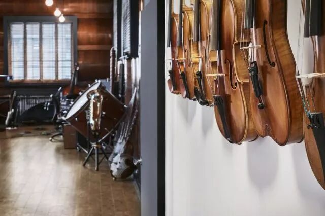 Satellite Room房间的名字取自加拿大第一颗人造卫星。简单开放的座席让乐队成员可以自由组织协作空间。与此同时,该空间还可以满足各种小型会面和音乐演出,其上的开放楼梯间也是如此。而夹层之下则腾出一间乐器维修工作室。朝南的巨大开窗让室内环境即便在阴郁的天气里也能感受到光明。除此之外,该巨型开窗令室内享有远眺历史建筑的良好视野,在内外的对视中,体验时代的变迁