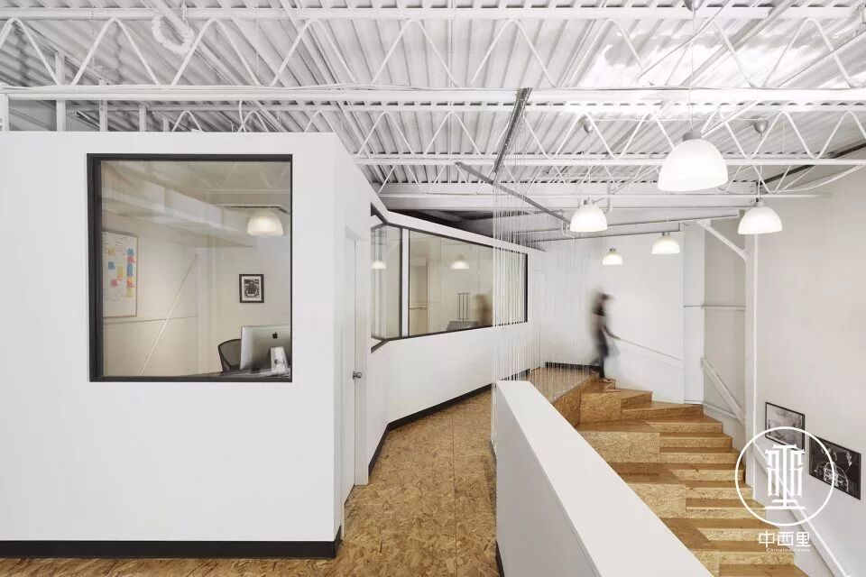 ▼设计师用清漆刨花板覆盖了夹层和楼梯地板