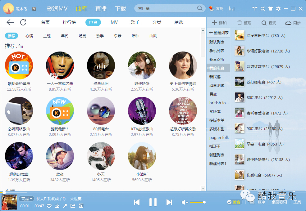 你是不是觉得在电脑上的播放器越来越笨重呢?针对电台用户,酷我音乐推出了电台场景,不要繁杂的按钮,不要繁多的推荐,只有美妙的歌曲。不过除了动听的歌曲,还有美奂美轮的全屏写真可以欣赏,属于国内独创的沉浸式体验。打开电台,你会感觉每一帧画面都是为你设计,每首歌曲都是为你推荐,每一点简单都让你的聆听无比享受!