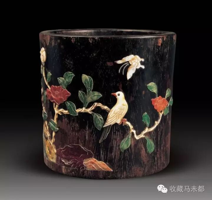 将各种宝物,如宝石、象牙、珊瑚以及玉石等材料有机结合到器物上,百宝生辉,使器物尽显富贵奢华之气。百宝嵌的图案花纹会随着照射光线角度的变化,发出各种各样的光彩。