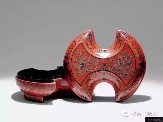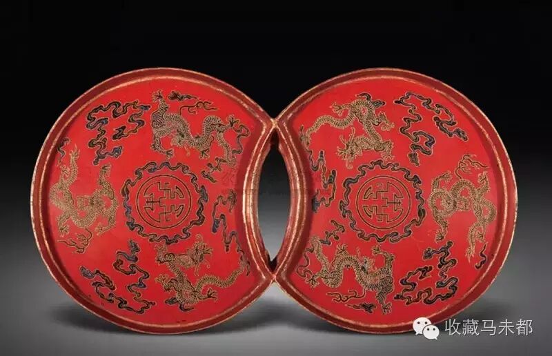 明嘉靖 戗金填彩漆龙凤纹元宝形盒