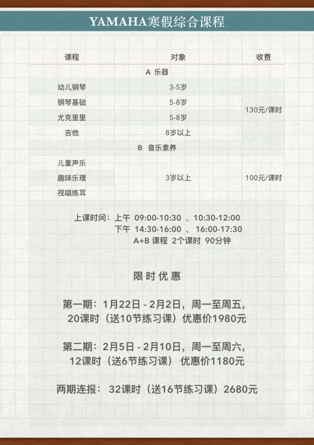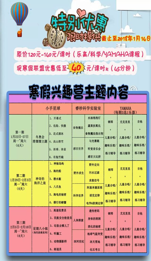 我们还有寒假兴趣营课程,有半天/全天课程