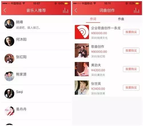 (2) 演唱演奏音乐人:提供演唱服务,如DEMO演唱、年会演唱等;演奏伴奏服务,如吉它/钢琴/萨斯风演出(伴奏)等。