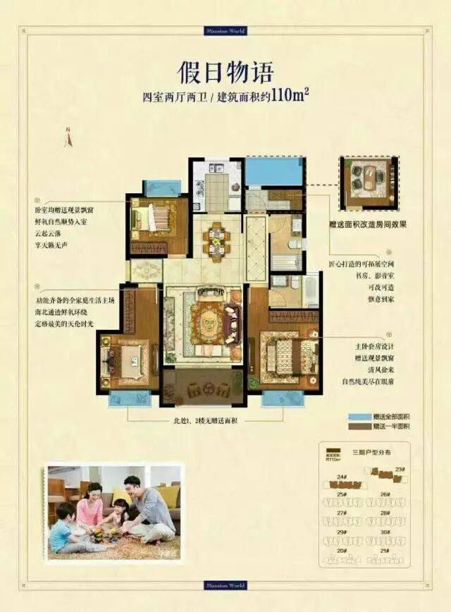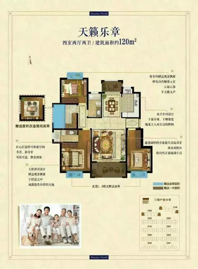 如果对空间要求更高,或有两个小孩,或三代同堂,想要更宽敞的空间,110-120㎡的四房无疑是合适的选择