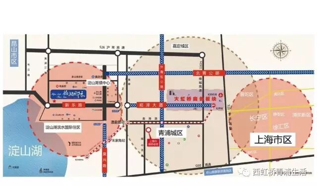 项目距离17号地铁线漕盈路站仅7公里,出门就是苏沪有轨电车,门口新乐大道与上海青浦崧泽大道接驳,一步进入上海市中心。